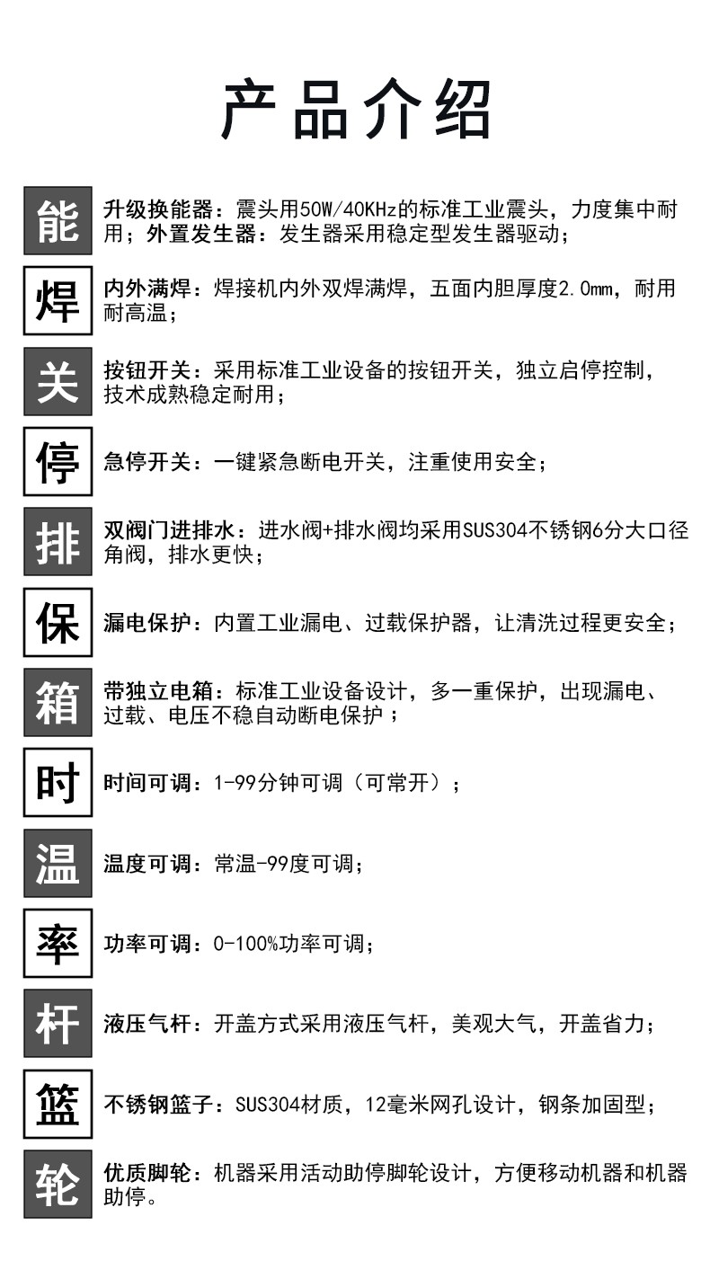 - 超声功率:1500W(可调)