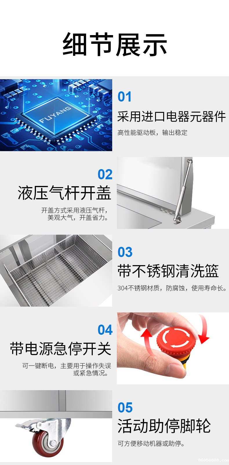 F-301DS | 96L 1500W 升降式超声波清洗设备 可定制