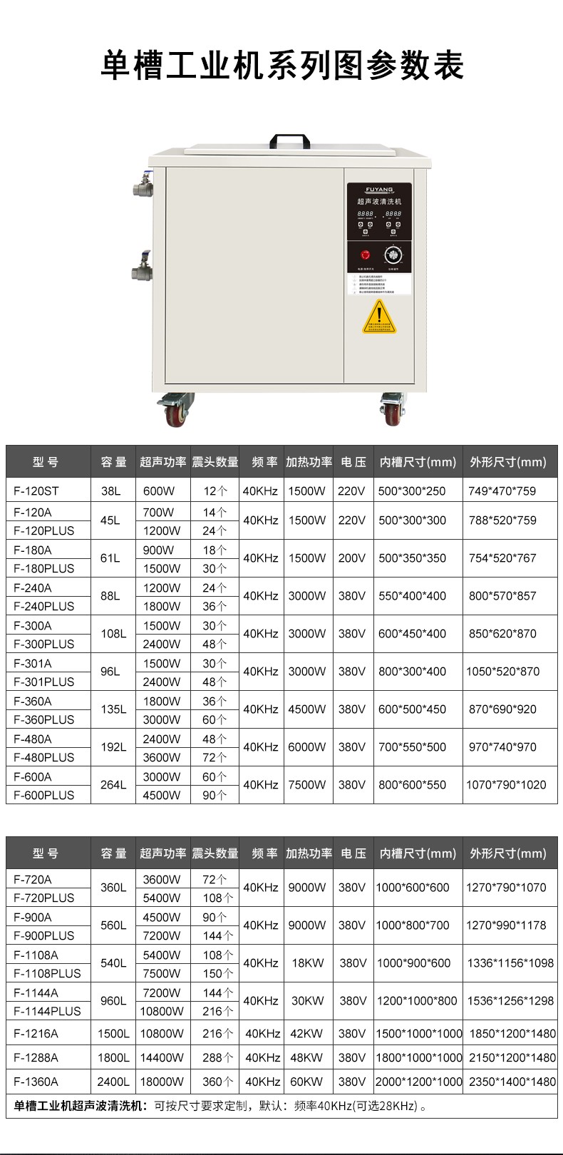 F-480A | 192L 2400W 工业单槽taptap国际下载安装(可定做)
