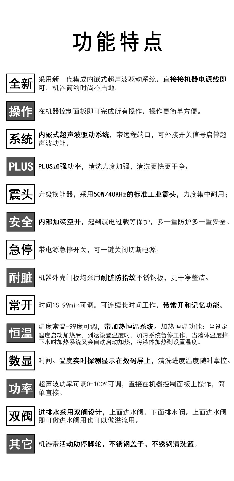 - 超声功率:2400W(可调)