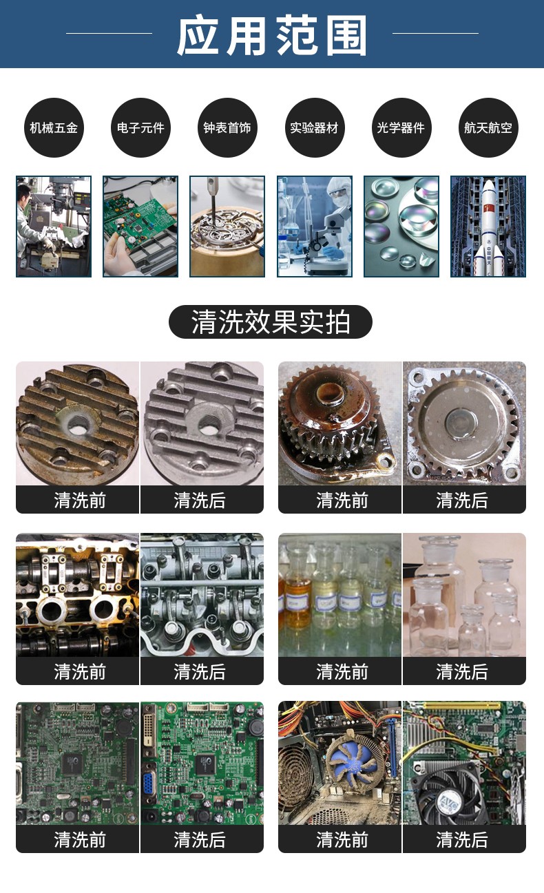 眼镜、珠宝、钟表、五金零件、电子电器、实验室、研究所、光学、医疗、生物、化工、纺织、机械、汽车、船舶、航空、工矿等。